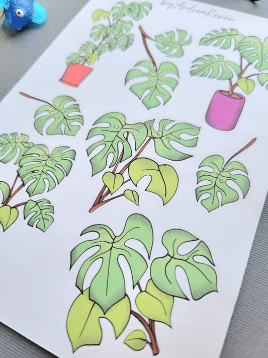 Monstera Plant Sticker Sheet Matte Finish - 8 Stickers