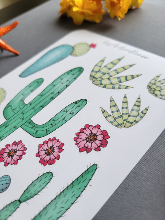 Cactus Plant Sticker Sheet Matte Finish - 13 Stickers