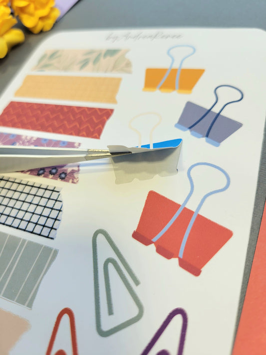 Paper Clip and Washi Tape Sticker Sheet - 16 Stickers