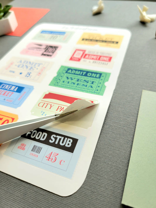 Vintage Ticket Sticker Sheet Matte Finish - 10 Stickers